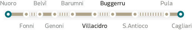 Da Villacidro, passando a far visita alla cascatella di San Spenduledda, fino a Buggerru in Costa Verde sono 50 chilometri con 616 metri di dislivello. Questi si trovano quasi tutti dal km 15 al km 30 del percorso nella salita che porta ad Arbus e continua fino ai 460 metri del Passo Bitterdì. Bike Point a Buggerru, pittoresco paese bagnato dal mare ed un tempo importante centro minerario.